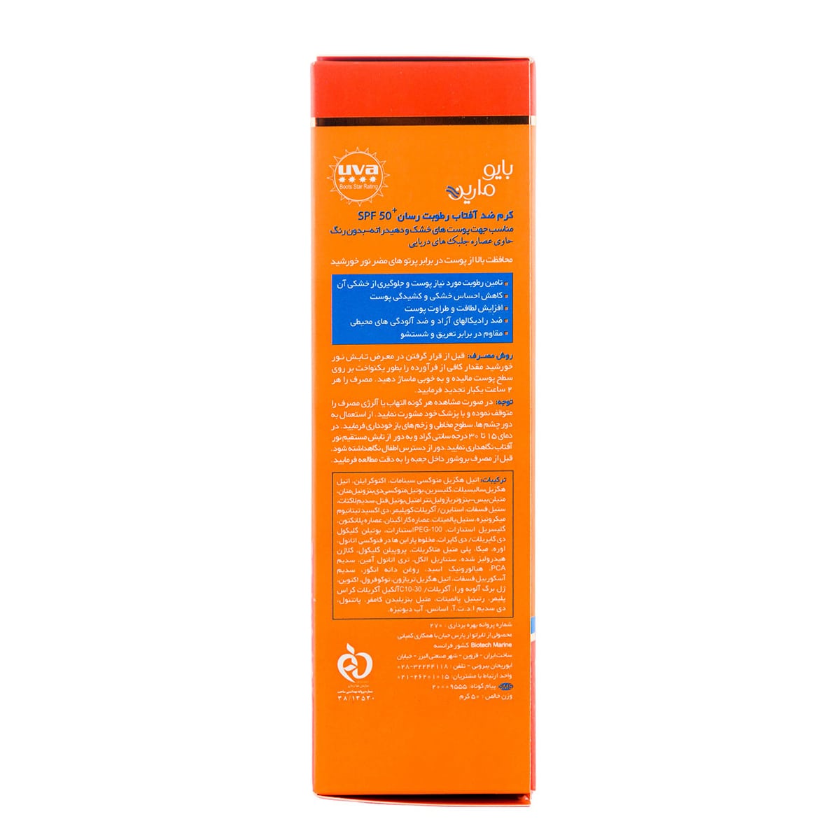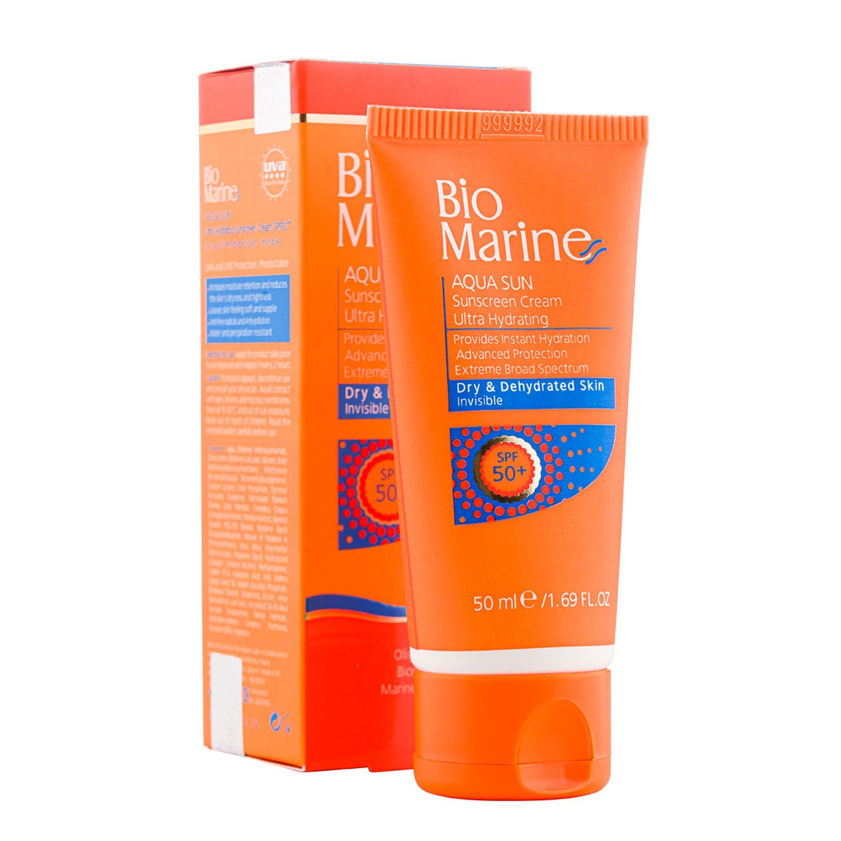 کرم ضد آفتاب رطوبت رسان بایومارین SPF50 مدل AQUA SUN مناسب پوست خشک و دهیدراته حجم 50 میل