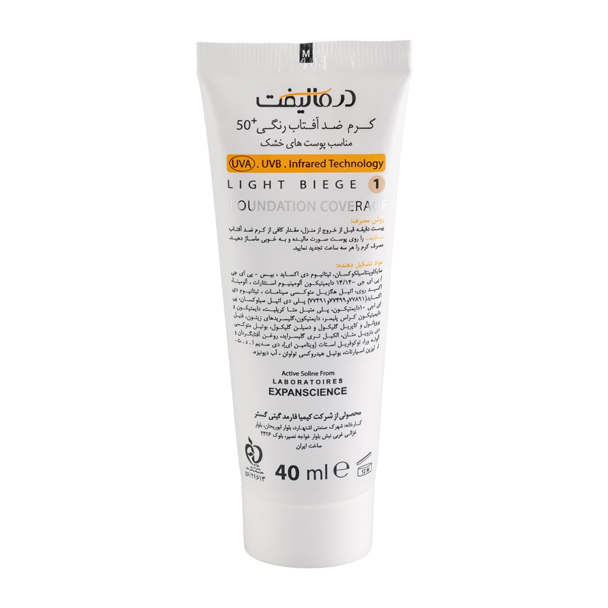 کرم ضد آفتاب رنگی بژ روشنSPF50 مناسب پوست خشک درمالیفت